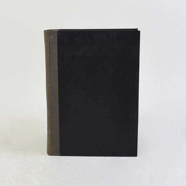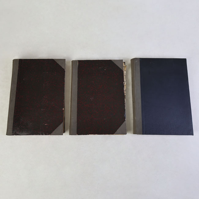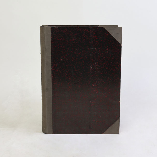 Libro de forma rectangular y de gran grosor, con tapas rígidas forradas en tonos oscuros y lomo ancho. En su interior contiene hojas con recortes de prensa.
