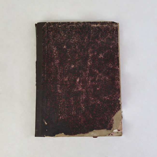 Libro de forma rectangular y de gran grosor, con tapas rígidas forradas en tonos oscuros y lomo ancho. En su interior contiene hojas con recortes de prensa.