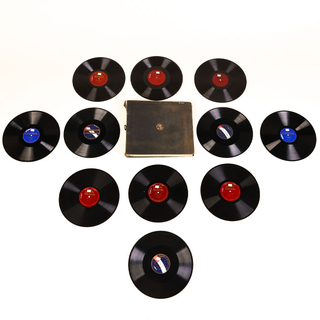 Álbum de vinilos, objetos de difusión musical compuesto por discos de vinilo . Los discos de vinilo son de color negro con surcos en circunferencia. En su parte central tiene una etiqueta circular con tipografía impresa de color negro.