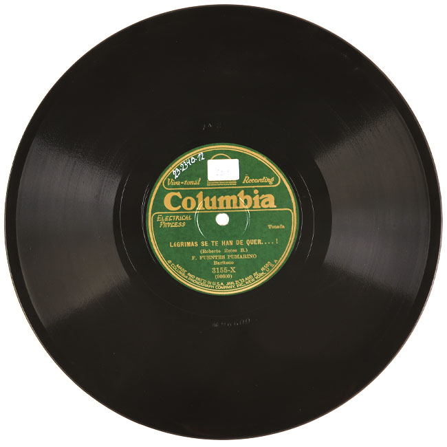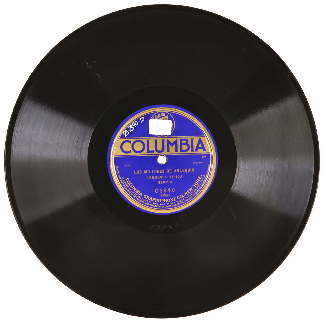 Álbum de vinilos, objetos de difusión musical compuesto por discos de vinilo . Los discos de vinilo son de color negro con surcos en circunferencia. En su parte central tiene una etiqueta circular con tipografía impresa de color negro.