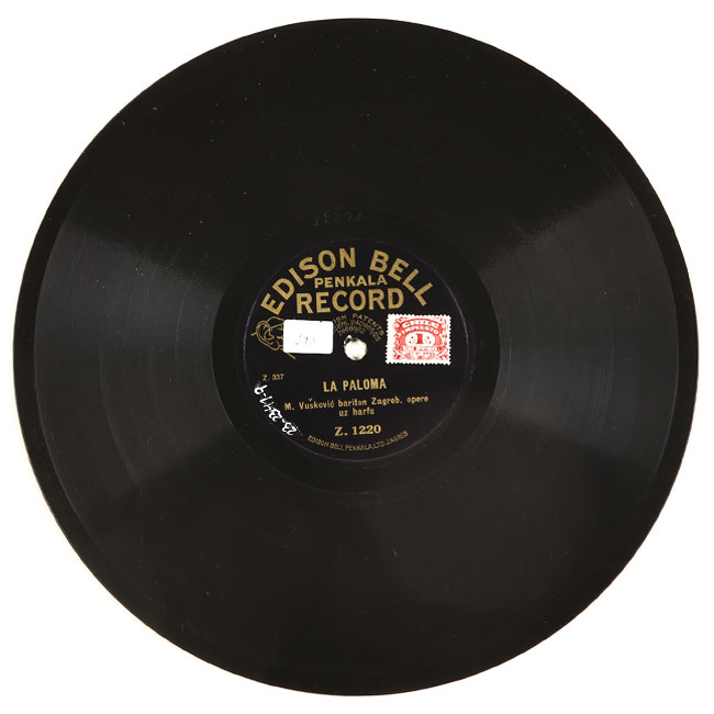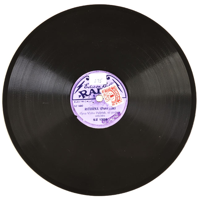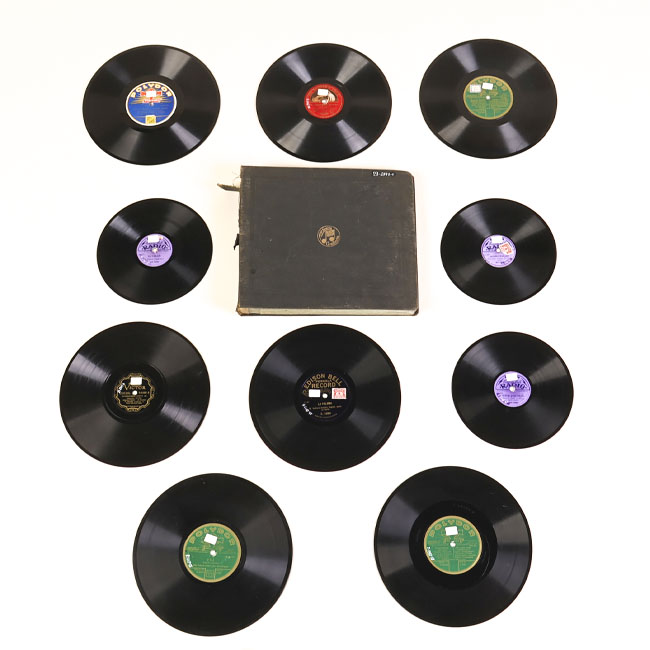 Álbum de vinilos, objetos de difusión musical compuesto por discos de vinilo . Los discos de vinilo son de color negro con surcos en circunferencia. En su parte central tiene una etiqueta circular con tipografía impresa de color negro.