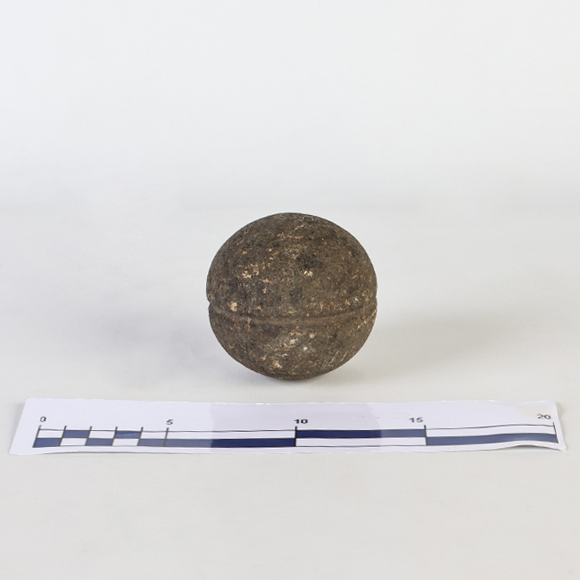 Objeto lítico, de forma esférica con una ranura por todo el contorno. De color gris. Esta formaba parte de una boleadora, atándose los tientos o cuerdas en la ranura.