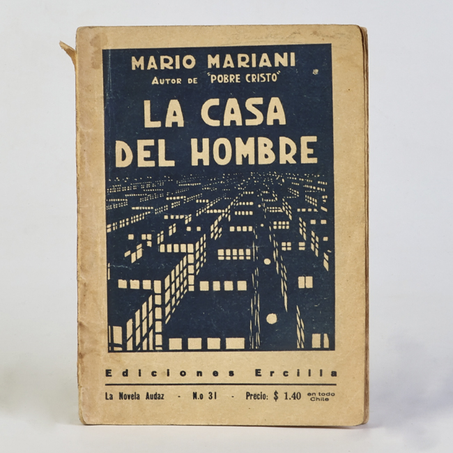 Libro de formato rectangular, compuesto por un conjunto de hojas con textos regulares, encuadernadas mediante un lomo. Presenta cubiertas rígidas, donde se lee el título: "La casa del hombre".