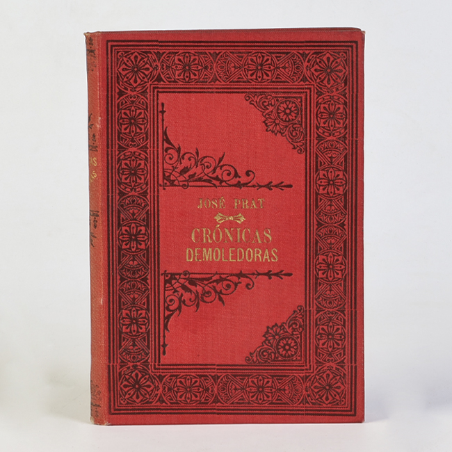 Libro de formato rectangular, compuesto por un conjunto de hojas con textos regulares, encuadernadas mediante un lomo. Presenta cubiertas rígidas, donde se lee el título: “Crónicas demoledoras".