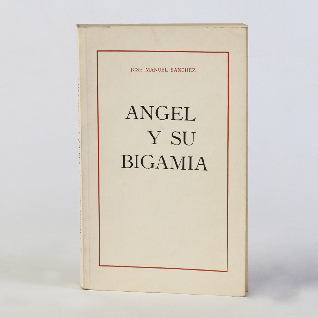 Libro de formato rectangular, compuesto por un conjunto de hojas con textos regulares, encuadernadas mediante un lomo. Presenta cubiertas rígidas, donde se lee el título: “Angel y su bigamia".
