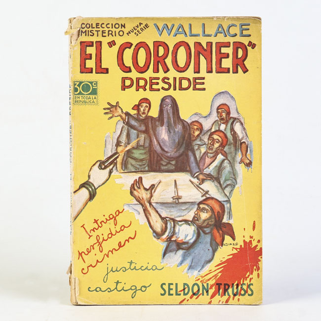 Libro de formato rectangular, compuesto por un conjunto de hojas con textos regulares, encuadernadas mediante un lomo. Presenta cubiertas rígidas, donde se lee el título: “El coroner preside".
