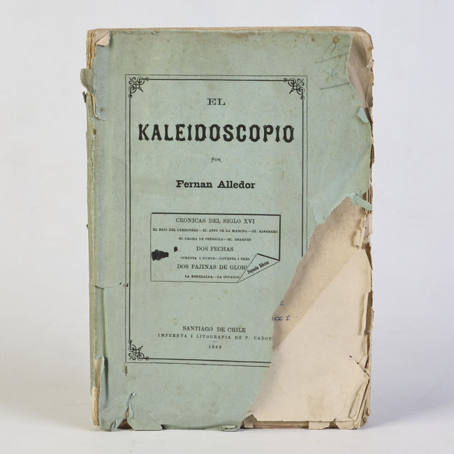 Libro de formato rectangular, compuesto por un conjunto de hojas con textos regulares, encuadernadas mediante un lomo. Presenta cubiertas rígidas, donde se lee el título: “El kaleidoscopio".