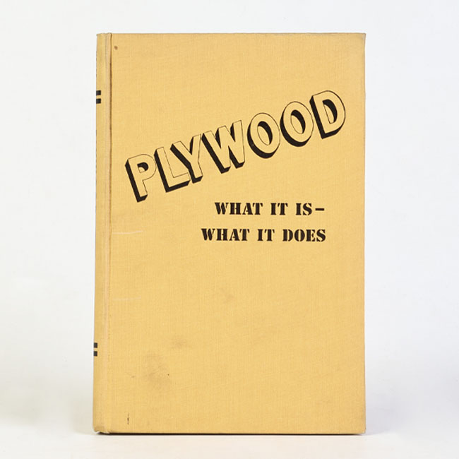 Libro de formato rectangular, compuesto por un conjunto de hojas con textos regulares, encuadernadas mediante un lomo. Presenta cubiertas rígidas, donde se lee el título: “ Plywood".