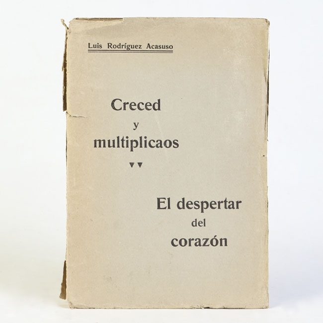 Libro de formato rectangular, compuesto por un conjunto de hojas con textos regulares, encuadernadas mediante un lomo. Presenta cubiertas rígidas, donde se lee el título: “ Creced y multiplicaos" seguido del subtitulo "El despertar del corazón".