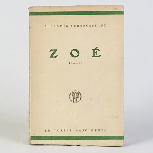 Libro de formato rectangular, compuesto por un conjunto de hojas con textos regulares, encuadernadas mediante un lomo. Presenta cubiertas rígidas, donde se lee el título: “Zoé".