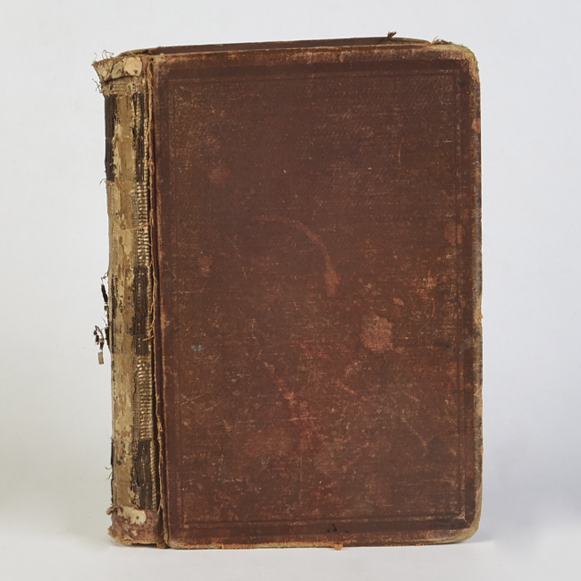 Libro de formato rectangular, compuesto por un conjunto de hojas con textos regulares, encuadernadas mediante un lomo. Presenta cubiertas rígidas en tono rojizo.