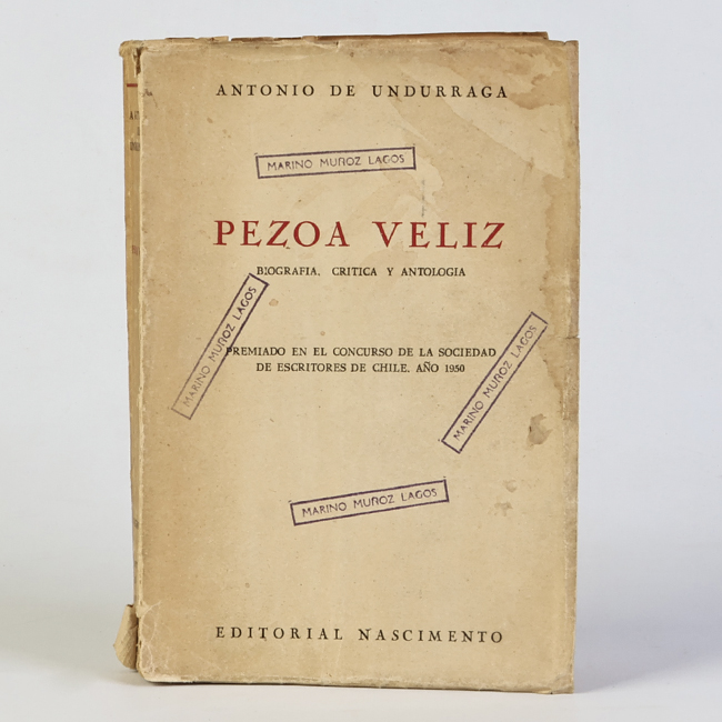 Libro de formato rectangular, compuesto por un conjunto de hojas con textos regulares, encuadernadas mediante un lomo. Presenta cubiertas rígidas, donde se lee el título: “Pezoa Veliz ".