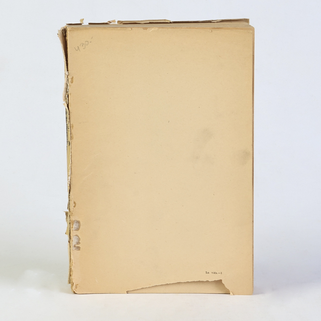 Libro sin portada de formato rectangular, compuesto por un conjunto de hojas con textos regulares, dispuestas en conjunto y unidas mediante encuadernación.