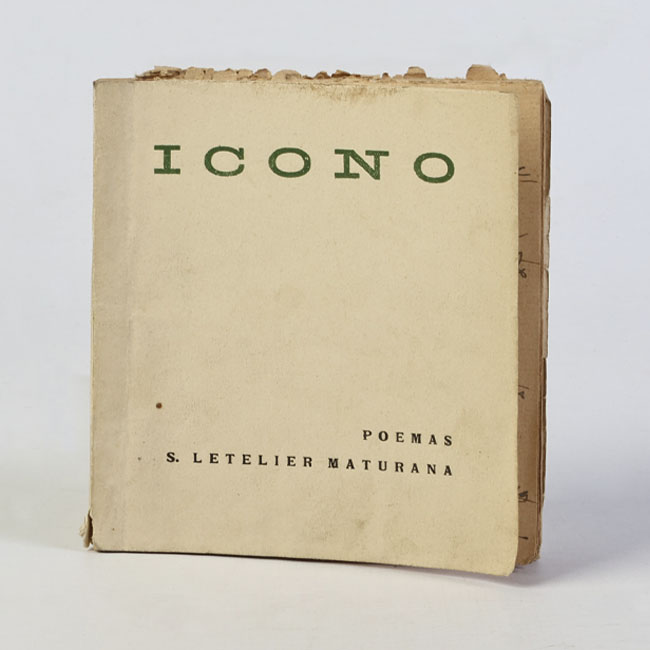 Libro de formato cuadrado, compuesto por un conjunto de hojas con textos regulares, encuadernadas mediante un lomo. Presenta cubiertas rígidas, donde se lee el título: “Icono".