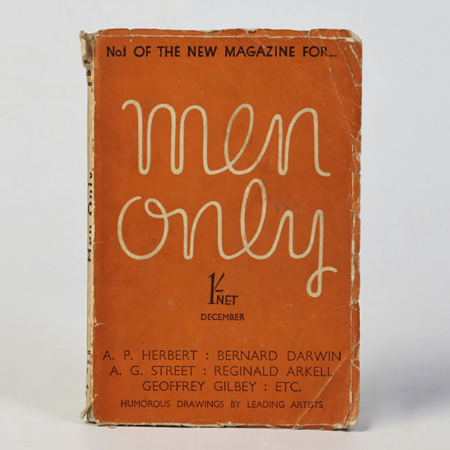 Libro de formato rectangular, compuesto por un conjunto de hojas con textos regulares, encuadernadas mediante un lomo. Presenta cubiertas rígidas, donde se lee el título: “Men only".