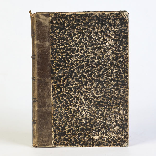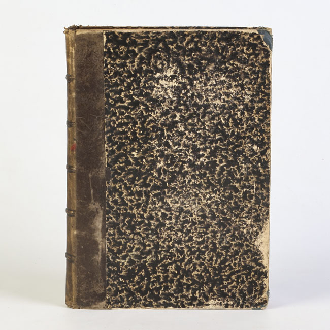 Libro de formato rectangular, compuesto por un conjunto de hojas con textos regulares, dispuestas en conjunto y unidas mediante encuadernación en lomo.