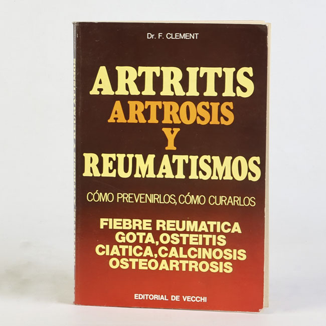 Libro de formato rectangular, compuesto por un conjunto de hojas con textos regulares, encuadernadas mediante un lomo. Presenta cubiertas rígidas, donde se lee el título: "Artritis artrosis y reumatismos".