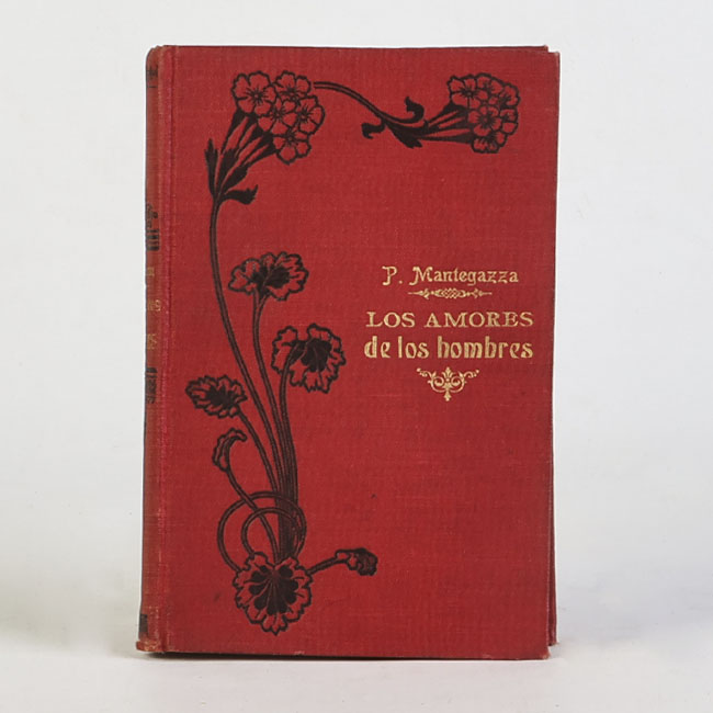 Libro de formato rectangular, compuesto por un conjunto de hojas con textos regulares, encuadernadas mediante un lomo. Presenta cubiertas rígidas, donde se lee el título: “Los amores de los hombres".