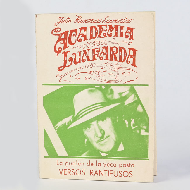 Libro de formato rectangular, compuesto por un conjunto de hojas con textos regulares, encuadernadas mediante un lomo. Presenta cubiertas rígidas, donde se lee el título: “ Academia Lunfarda".