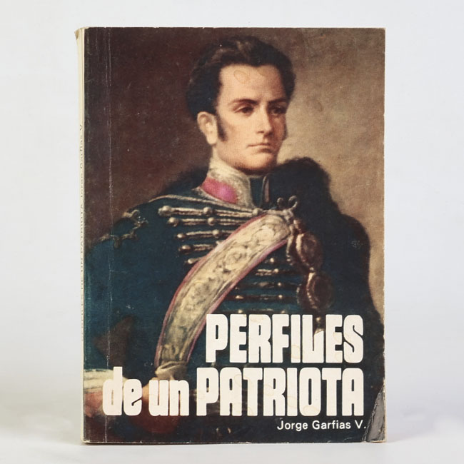 Libro de formato rectangular, compuesto por un conjunto de hojas con textos regulares, encuadernadas mediante un lomo. Presenta cubiertas rígidas, donde se lee el título: “ Perfiles de un patriota".