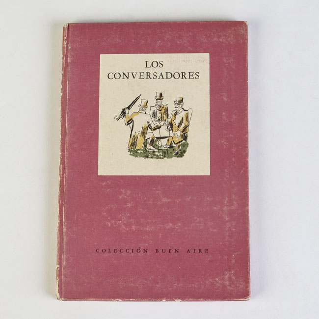Libro de formato rectangular, compuesto por un conjunto de hojas con textos regulares, encuadernadas mediante un lomo. Presenta cubiertas rígidas, donde se lee el título: “ Los conversadores".