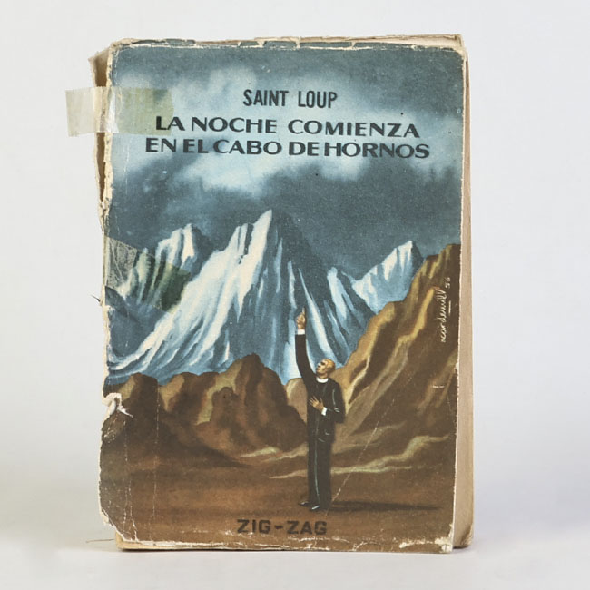 Libro de formato rectangular, compuesto por un conjunto de hojas con textos regulares, encuadernadas mediante un lomo. Presenta cubiertas rígidas, donde se lee el título: “La noche comienza en el Cabo de Hornos".