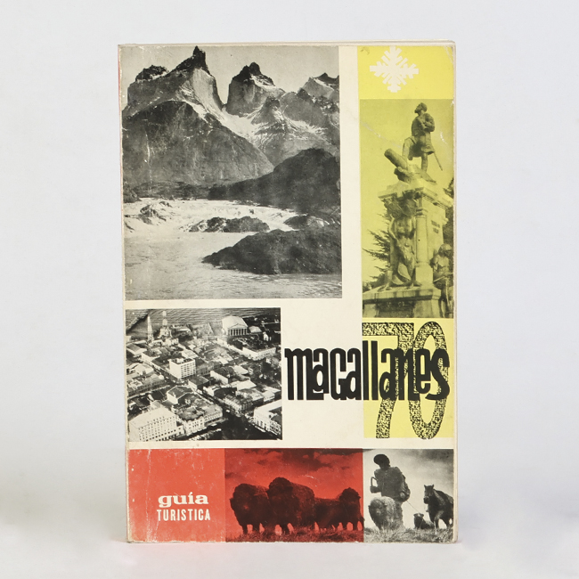 Guía de formato rectangular, compuesto por un conjunto de hojas con textos regulares, encuadernadas mediante un lomo. Presenta cubiertas rígidas, donde se lee el título: “ Magallanes guia turistica ".