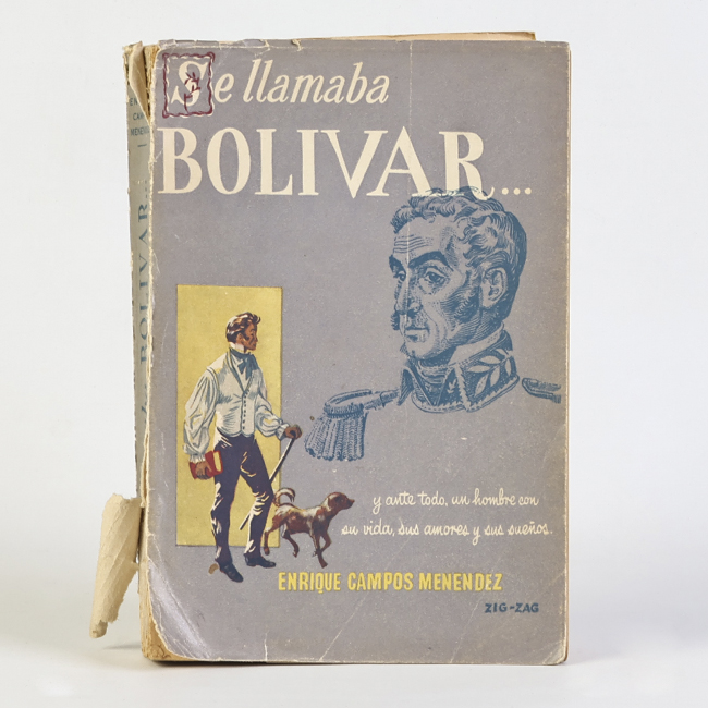 Libro de formato rectangular, compuesto por un conjunto de hojas con textos regulares, encuadernadas mediante un lomo. Presenta cubiertas rígidas, donde se lee el título: “Se llamaba Bolivar... ".