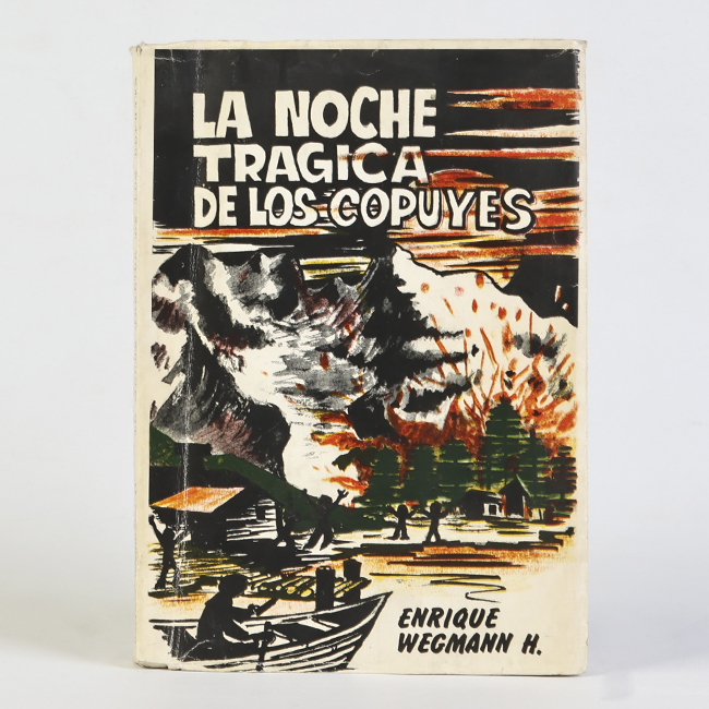 Libro de formato rectangular, compuesto por un conjunto de hojas con textos regulares, encuadernadas mediante un lomo. Presenta cubiertas rígidas, donde se lee el título: “ La noche tragica de los Copuyes".