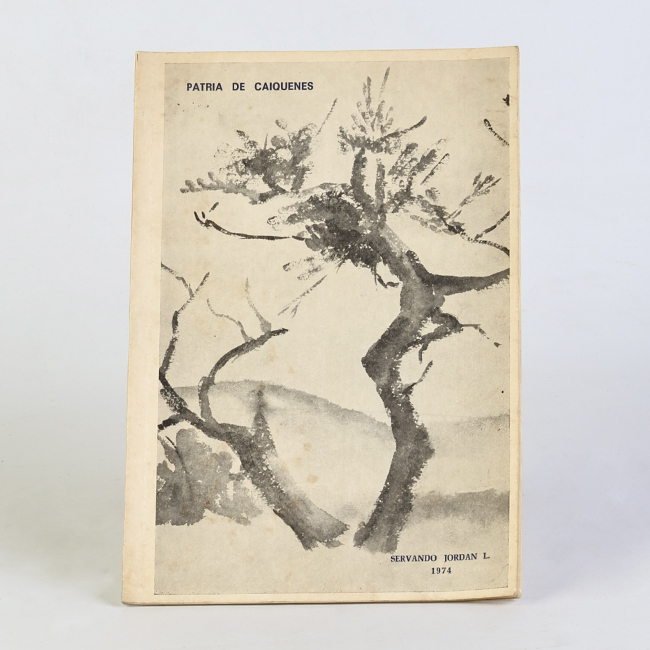 Libro de formato rectangular, compuesto por un conjunto de hojas con textos regulares, encuadernadas mediante un lomo. Presenta cubiertas rígidas, donde se lee el título: “ Patria de caiquenes".