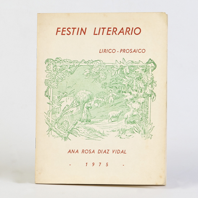 Libro de formato rectangular, compuesto por un conjunto de hojas con textos regulares, encuadernadas mediante un lomo. Presenta cubiertas rígidas, donde se lee el título: “Festin literario".
