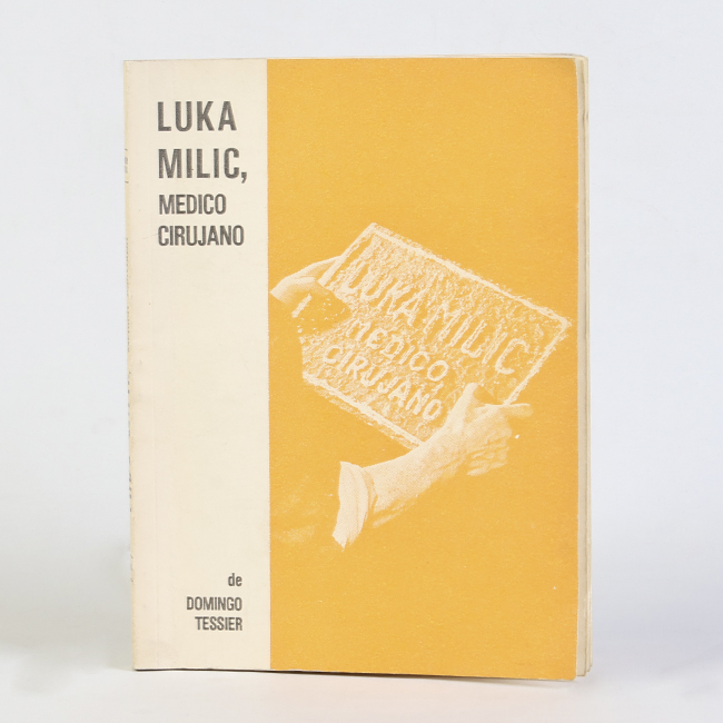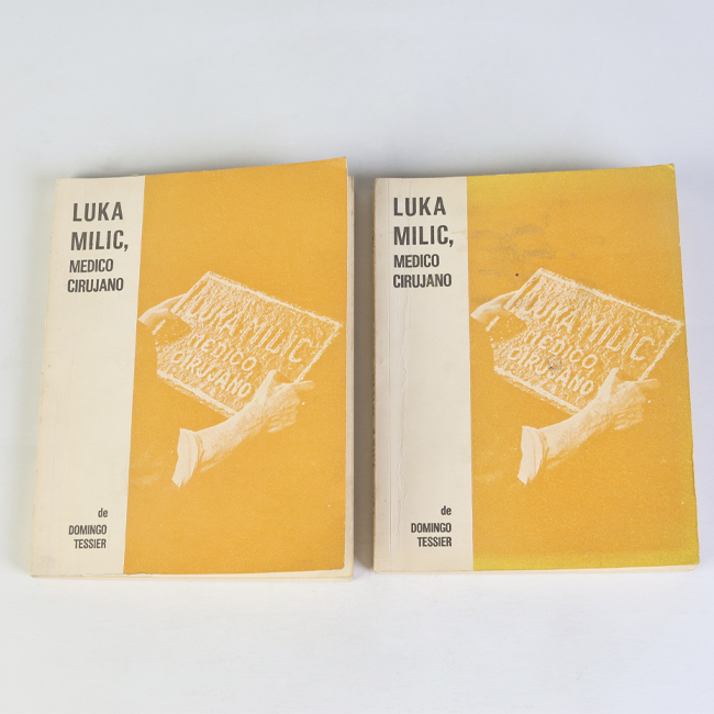Libro de formato rectangular, compuesto por un conjunto de hojas con textos regulares, encuadernadas mediante un lomo. Presenta cubiertas rígidas, donde se lee el título: “Luka Milic, medico cirujano".