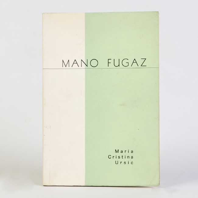 Libro de formato rectangular, compuesto por un conjunto de hojas con textos regulares, encuadernadas mediante un lomo. Presenta cubiertas rígidas, donde se lee el título: “Mano fugaz".