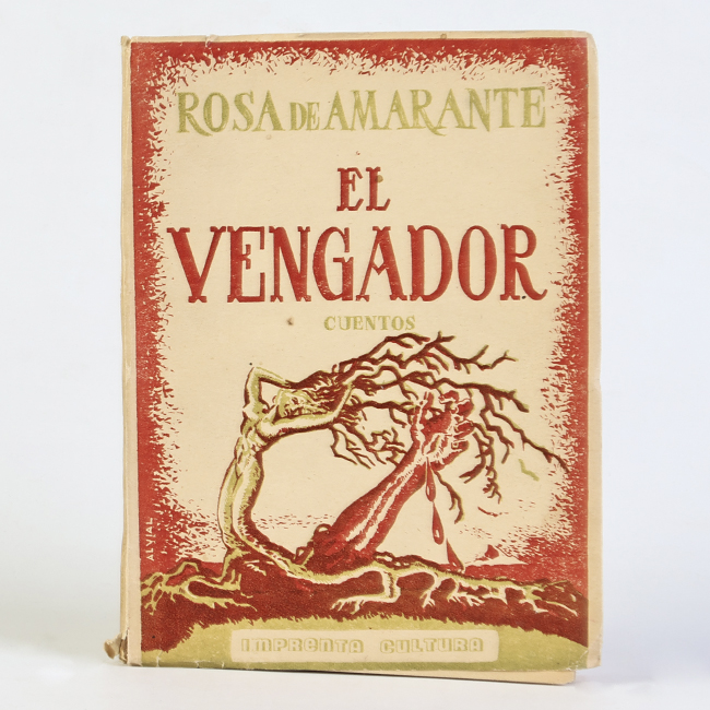 Libro de formato rectangular, compuesto por un conjunto de hojas con textos regulares, encuadernadas mediante un lomo. Presenta cubiertas rígidas, donde se lee el título: “El vengador".