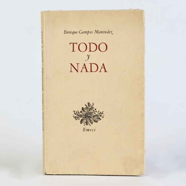 Libro de formato rectangular, compuesto por un conjunto de hojas con textos regulares, encuadernadas mediante un lomo. Presenta cubiertas rígidas, donde se lee el título: “Todo y nada".