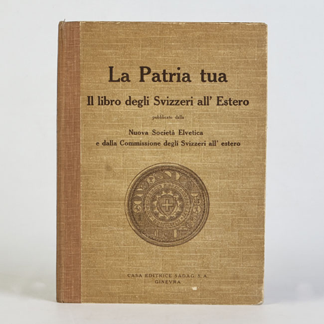 Libro de formato rectangular, compuesto por un conjunto de hojas con textos regulares, encuadernadas mediante un lomo. Presenta cubiertas rígidas, donde se lee el título: “La patria tua ".