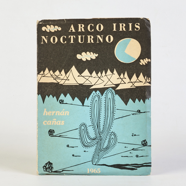 Libro de formato rectangular, compuesto por un conjunto de hojas con textos regulares, encuadernadas mediante un lomo. Presenta cubiertas rígidas, donde se lee el título: “ Arco iris nocturno".
