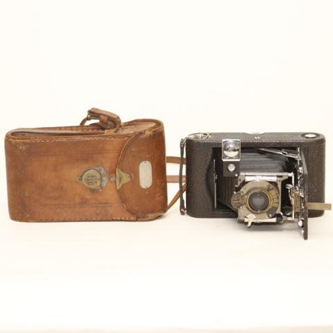 La cámara posee un estuche de cuero y broche de bronce con correa ajustable para ser utilizadoy transportado a modo de cartera o bolso.