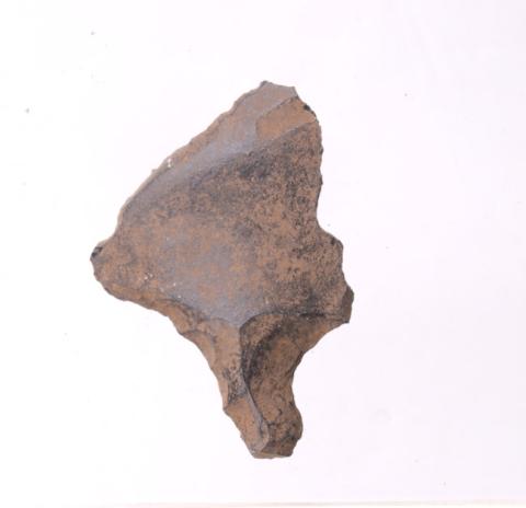 Instrumento lítico de forma general triangular de bordes irregulares. No se observa presencia de borde activo. La pieza presenta pedúnculo delgado, terminado en bisel.