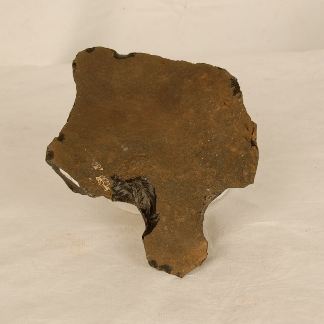 Objeto de forma triangular, de bordes irregulares. Presenta filo sinuoso irregular, con presencia de borde activo. Se observa pedúnculo terminado en forma de bisel. Petrográficamente corresponde a obsidiana que presenta esferulitas.