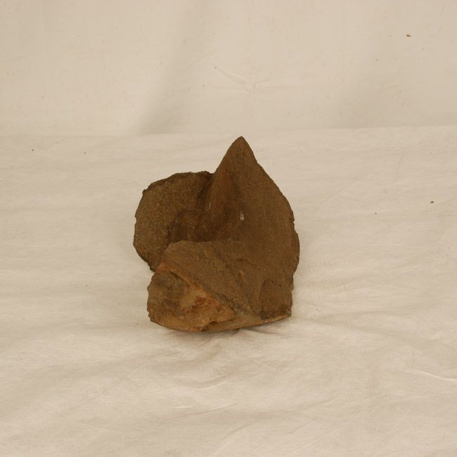 Objeto lítico consistente en un fragmento de cuenco depiedra, de forma irregular. Presenta ángulos rectos y una concavidad de superficie regular. Petrográficamente corresponde a basalto afanítico.