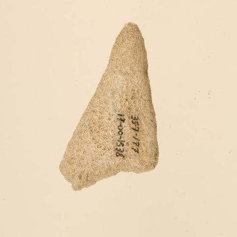 Objeto correspondiente a una lija confeccionada en coral. La lija presenta forma cónica y su superficie se encuentra emparejada debido al uso.