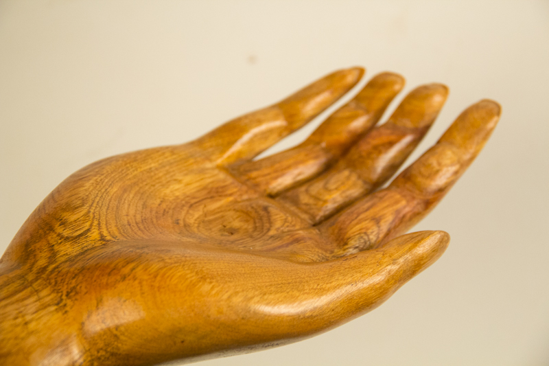 Copia de la mano recolectada en la expedición del capitán James Cook que se encuentra en el British Museum en Londres. Es más ancha que la original y no tiene los dedos curvados hacia arriba, en sentido opuesto a la palma. En los otros detalles tales como las uñas y los pliegues, esta bastante bien trabajada. Las uñas son mas cortas que en el original y no están acanaladas. En el extremo correspondiente a la muñeca tiene una terminación similar a un pomo ligeramente cónico y carece del orificio para atarla del orginal, como se aprecia en la foto del libro "The Art of Easter Island".