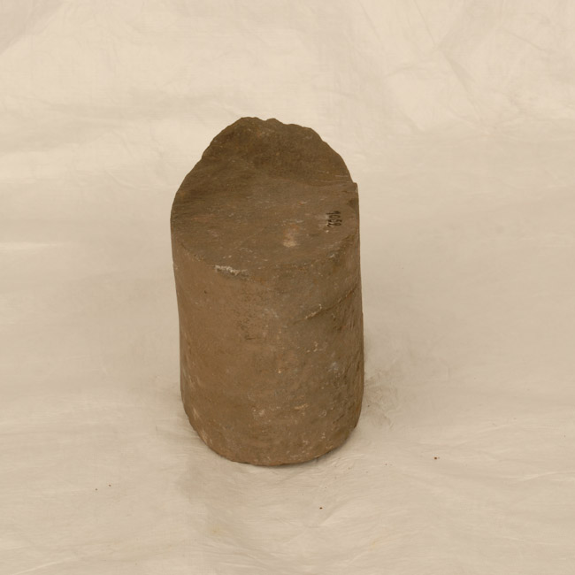 Poro o guijarro de forma subcilíndrica. Presenta una línea incisa en su superficie. Presenta sus lados planos trabajados de manera tal que se generan superficies planas, regulares.