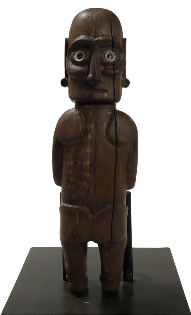 Probablemente es una copia inspirada en la pieza que posee el Mapse y que pertenecía a Policarpo Toro, la cual fue traspasada al Mapse desde el Museo de Historia Natural de Concepción. fue publicada en el libro de art of Easter Island y es probable que el artista se haya inspirado en la fotografía ahí publicada para tallar esta pieza.