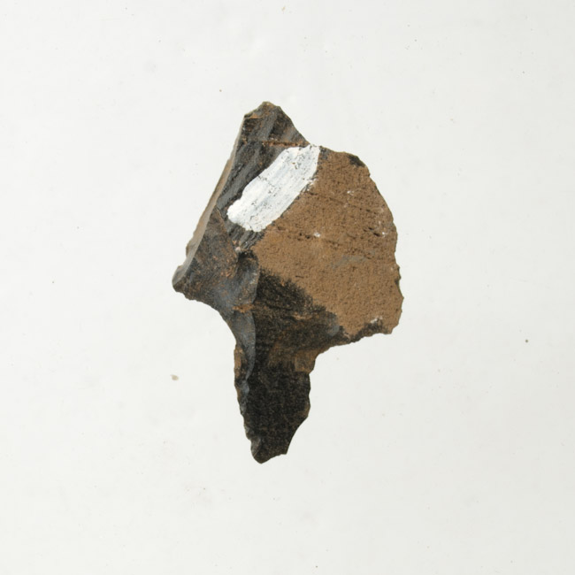 Instrumento lítico de forma general triangular, de bordes irregulares. La pieza no presenta filo y posee un pedúnculo terminado en bisel.