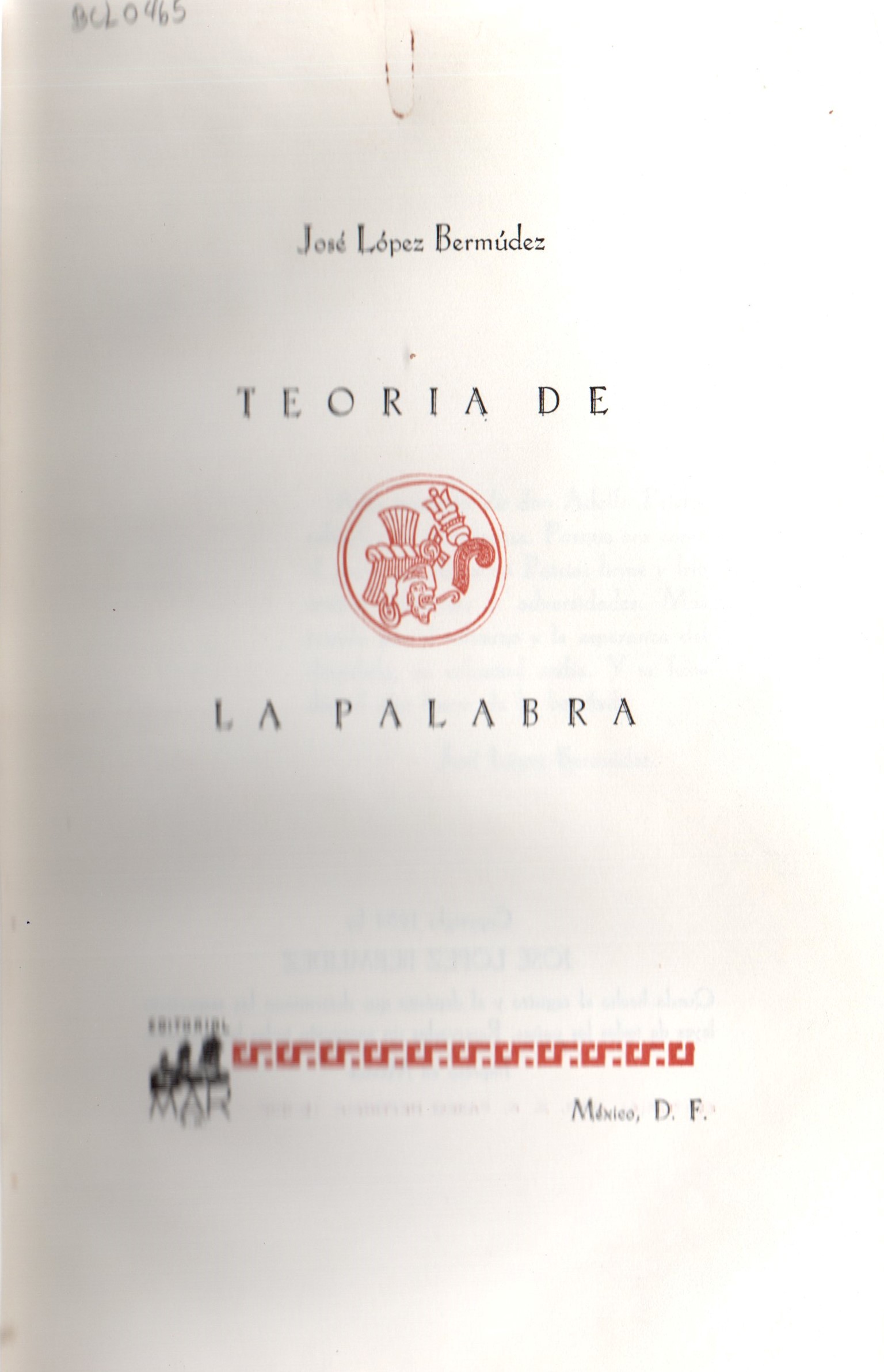 Para Gabriela Mistral, la voluntad mas pura y la flor más alta de la plalabra americana. Con la devota admiración, (...) Paseo de Las Plamas 915, Lomas Mexico, D.F.