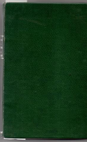 Obra literaria impresa de formato rectangular vertical. Encuadernación de tapa dura, con cubierta verde. Interior de hojas cosidas, con encabezada de hilos rojos y blancos y hojas de papel blancas, con texto negro impreso.