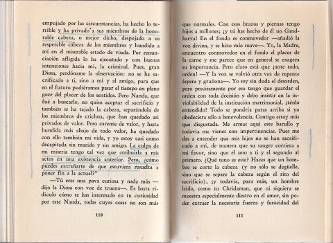 Obra literaria impresa de formato rectangular vertical. Encuadernación de tapa dura de color café, lomo con letras doradas. Interior de papel con texto negro impreso. Tiene 192 páginas. Tiene marcas lineales y anotaciones en manuscrito de color azul realizadas con lápiz azul carbón al margen de los textos.