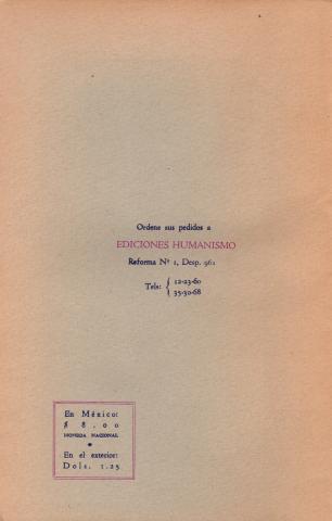 Libro regalado por el autor a Gabriela Mistral en 1956. Perteneció a la biblioteca personal de Gabriela Mistral, donada por Doris Dana a Barnard College, Universidad de Columbia, institución donde Gabriela Mistral se desempeñó como profesora visitante entre los años 1930-1931. El año 2007, Barnard College, a través de Doris Atkinson, dona esta colección completa al Estado de Chile. El año 2010, la colección es transferida al Museo Gabriela Mistral de Vicuña.